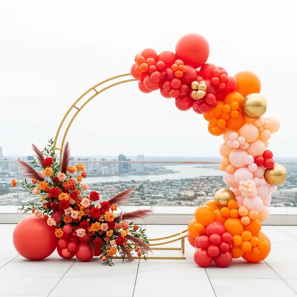 Make your photos look amazing with a creative balloon wall. It’s made with lots of different colors, sizes, and textures to create a beautiful background. It’s perfect for capturing happy moments and celebrating. This Balloon Decoration works like amazing photo booths.