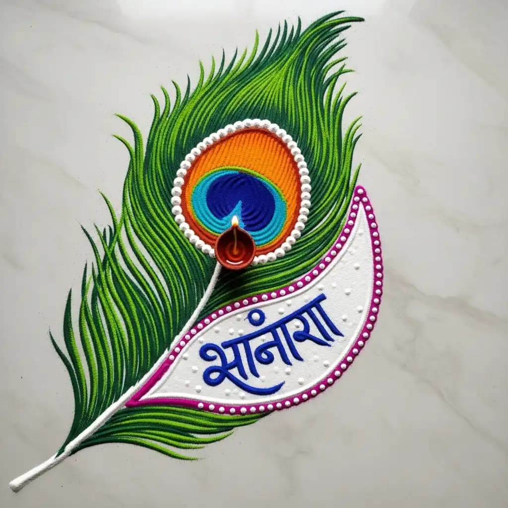 Peacock Feather Krishna Rangoli Designs