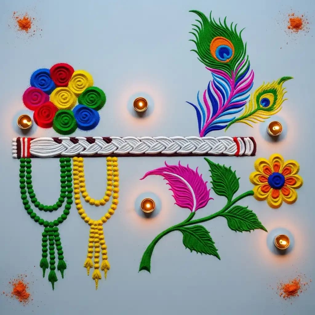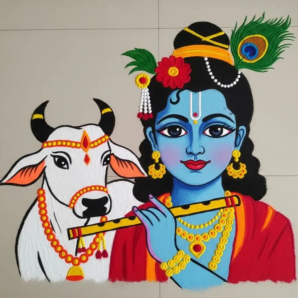 Janmashtami: Commemorate Lord Krishna's birth with intricate and colorful rangoli patterns.