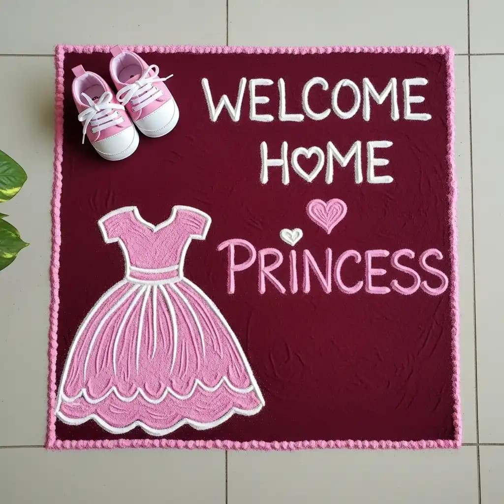 Create a warm and inviting atmosphere with rangoli designs at your doorstep, expressing hospitality and harmony to beautify your Baby Welcome Decoration more graceful.